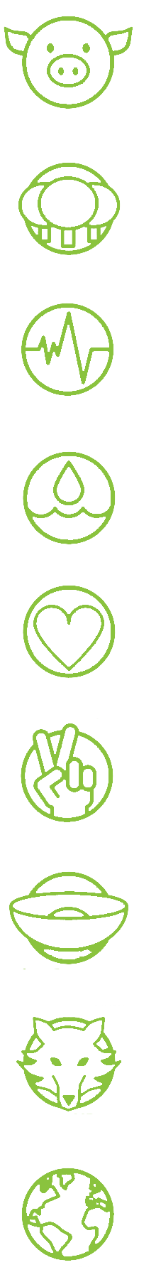 Veganski način življenja za: živali deževni gozd zdravje vode sočutje mir svetovno lakoto divje živali Zemljo Veganstvo ni prepričanje. Živali umirajo.