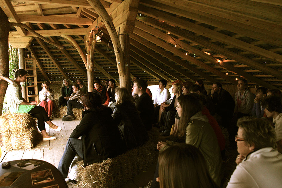 Zgodbe imajo izredno moč. Z njimi odpiramo vrata v druge razsežnosti, utrjujemo določen popis sveta ali pa celo kreiramo novo resničnost. Odgovornost katere zgodbe pripovedujemo in s kakšnim namenom je zelo velika. Tekom let delovanja našega društva smo spontano začeli razvijati umetnost pripovedovanja zgodb, ki so nam odpirale vrata v skrivnostne globine naravnega sveta. Zgodbe smo uporabljali na delavnicah in izobraževanjih, kot del prehoda, ki omogoči stik med notranjo dušno pokrajino in zunanjim naravnim svetom, predvsem pa zgodbe, ki nam odpirajo oči o odgovornosti do Življenja. Danes raziskujemo posvečeno umetnost pripovedovanja, zbiramo zgodbe drugih avtorjev z okoljevarstveno tematiko in globokimi sporočili, preučujemo legende, mitologije in stare ljudske zgodbe, v katerih so skriti in velikokrat močno zamaskirani dušni zemljevidi. Gostimo pripovedovalce in učitelje pripovedovanja, prirejamo izobraževanja, seminarje, delavnice, sodelujemo z tovrstnimi umetniki po svetu in si izmenjujemo dobre prakse. Umetnost pripovedovanja zgodb za Naravo pa ni uporabna zgolj pri dvigovanju srčne in okoljske zavesti, temveč ima vpliv tudi na Naravo samo, saj je zelo dovzetna za vibracije in čustveno 'polje', ki se ustvari ob 'dobrih' pripovedovalcih in 'dobrih' poslušalcih.